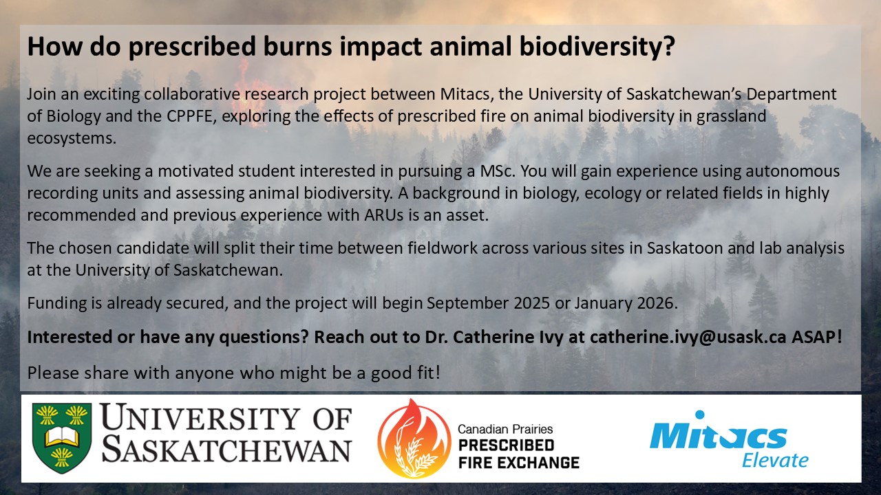 An opportunity for an MSc and PhD student effective Fall 2026 in the Grieves Lab at the University of Saskatchewan!